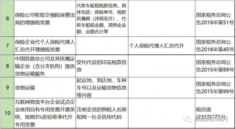 一、增值税发票备注栏总表