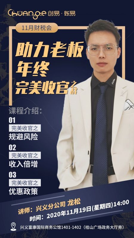 财税讲师龙松为客户朋友们讲解新政,从优惠政策、收入倍增、规避风险三个维度助力老板年终完美收官!