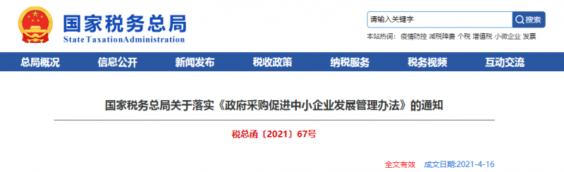 为落实《财政部 工业和信息化部关于印发〈政府采购促进中小企业发展管理办法〉的通知》(财库〔202046号,以下简称《办法》)要求,发挥政府采购政策功能,促进中小企业发展,结合税务系统实际,现将有关事项通知如下: