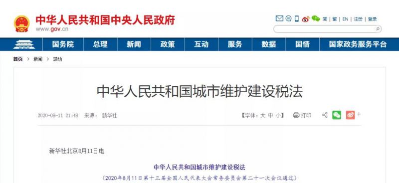91日起,《中华人民共和国城市维护建设税法》和《中华人民共和国契税法》两大税法正式开始施行。